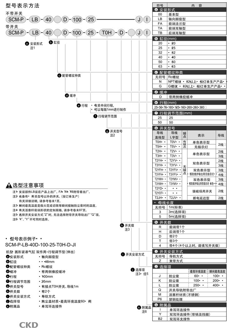 SCM-P-00,SCM-P-LB,SCM-P-FA,SCM-P-TA,SCM-P-TB,SCM-P-TB-63D-150,CKD圓形緊湊氣缸