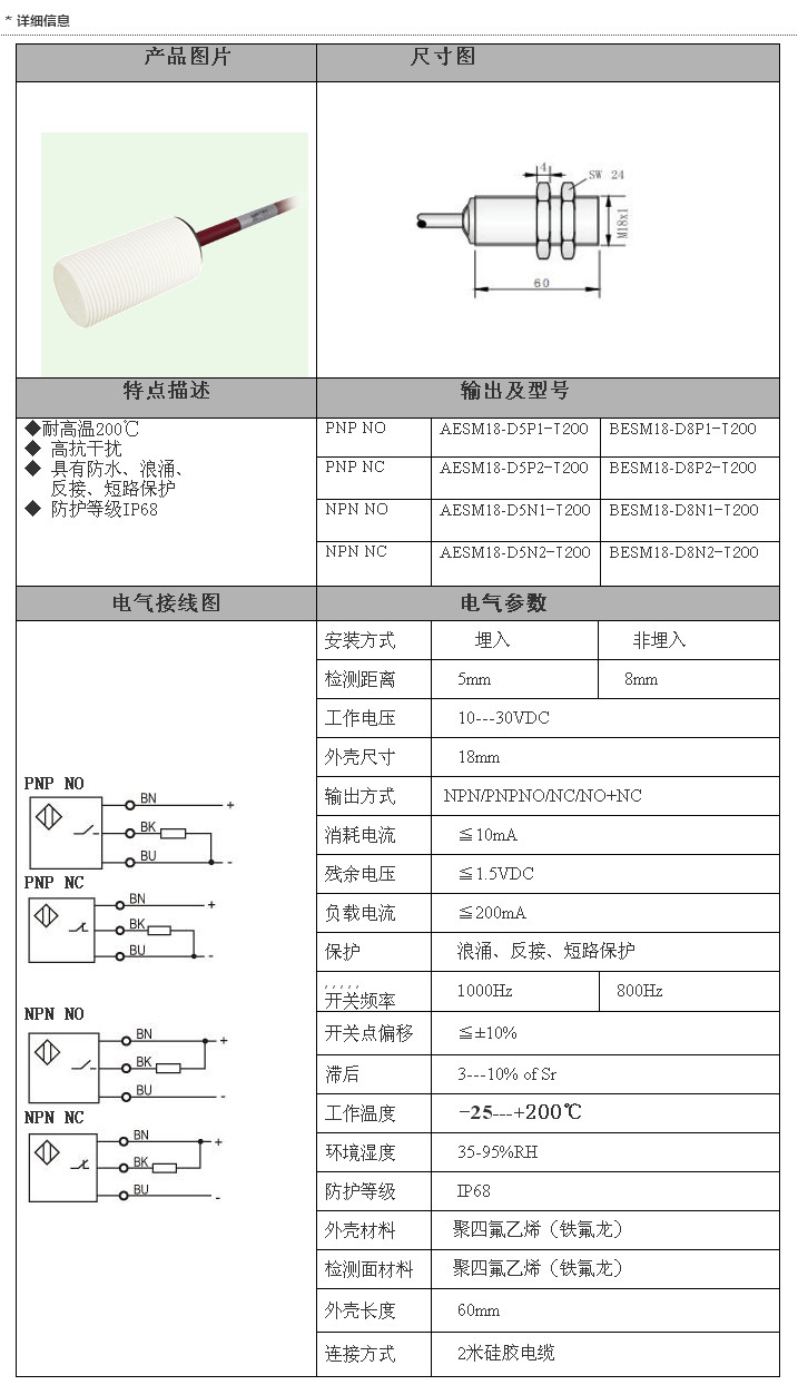 AESM18-D5N1-T200,BESM18-D8N1-T200,AESM18-D5N2-T200,BESM18-D8N2-T200,