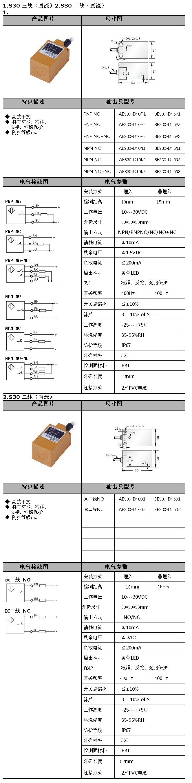 AES30-D10D1,BES30-D15D1,AES30-D10D2,BES30-D15D2,