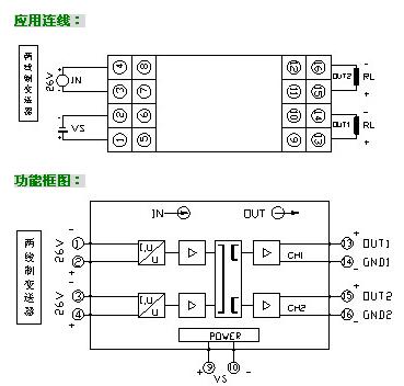 l 雙通道隔離輸出,并對現場(chǎng)二線(xiàn)制變送器提供回路電源24V