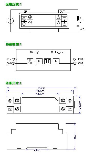 例:輸入4-20mA ;輸出4-20mA,無(wú)外供電
