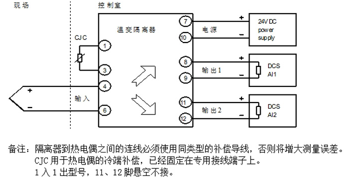 MIK-503E熱電偶溫變隔離器 接收現場(chǎng)的K、S、E、B、R、T、J、N等熱電偶傳感器的輸出信號,經(jīng)過(guò)隔離線(xiàn)性化處理,并轉換成與溫度成線(xiàn)性關(guān)系的電壓或電流信號輸出??蛇x1入1出、1入2出??稍诰€(xiàn)設置分度號和溫度范圍。