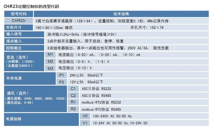 CHR23定量控制儀的基本性能