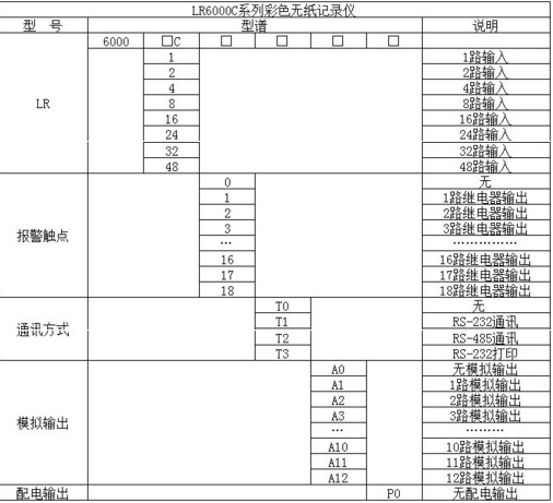 LR6000C系列彩色無(wú)紙記錄儀48路(不含報警,變送等其它功能)萬(wàn)能輸入(可組態(tài)選擇輸入:標準電壓、標準電流、熱電偶、熱電阻、頻率、毫伏等)??蓭?8路報警輸出,12個(gè)變送輸出,RS232/485通訊接口,以太網(wǎng)接口,微型打印機接口和USB接口,SD卡插座;可提供傳感器配電;具有強大的顯示功能,實(shí)時(shí)曲線(xiàn)顯示,歷史曲線(xiàn)追憶,棒圖顯示,報警列表顯示。人性化的外觀(guān)設計、完美的功能體現、可靠的硬件品質(zhì)、精湛的制造工藝,使LR6000C具有更高的性能價(jià)格比。