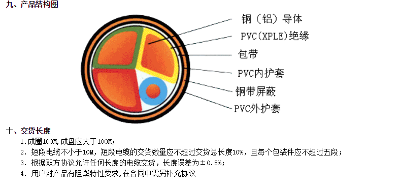 阻燃型聚氯乙烯(交聯(lián)聚乙烯)絕緣金屬屏蔽聚氯乙烯護套電力電纜 |