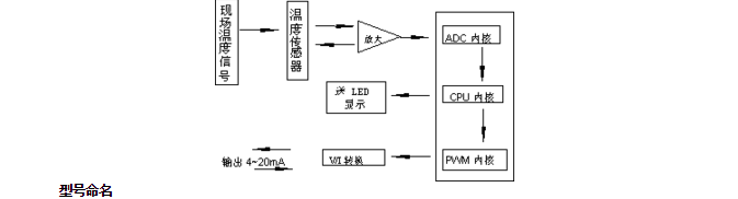 儀表通過(guò)溫度傳感器把溫度信號變?yōu)殡娦盘?,再由前置放大器把此電信號放大濾波,送往CPU的A/D 轉換模塊進(jìn)行模擬量到數字量的變換。最后由CPU進(jìn)行數據處理并顯示及PWM輸出。原理框圖如下: