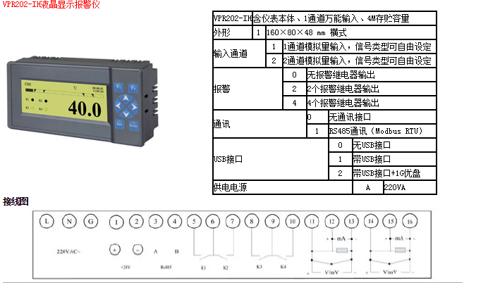 VPR202系列智能儀表是以先進(jìn)的CPU為核心,基于智能化、數字化、網(wǎng)絡(luò )化設計思想,輔以大規模集成電路、信號智能調理、SmartBus總線(xiàn)以及精致型結構設計技術(shù)的新型智能儀表。超薄設計,功耗低、精度高、通用性強、運行穩定、高性?xún)r(jià)比;可實(shí)現信號采集、顯示、處理、記錄、報警、通訊等功能;采用RS-232C/RS-485通訊接口,支持標準MODBUS-RTU協(xié)議,可方便實(shí)現遠程監控。