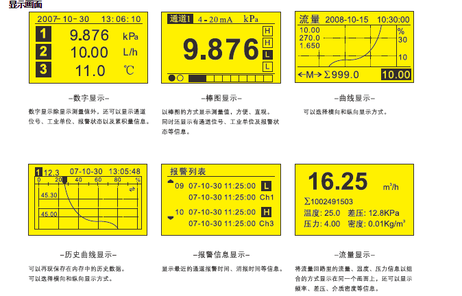 ◎每個(gè)通道均支持流量累積功能,提供小時(shí)報表、8小時(shí)班報、12小時(shí)班報、日報+月報等多種報表形式。