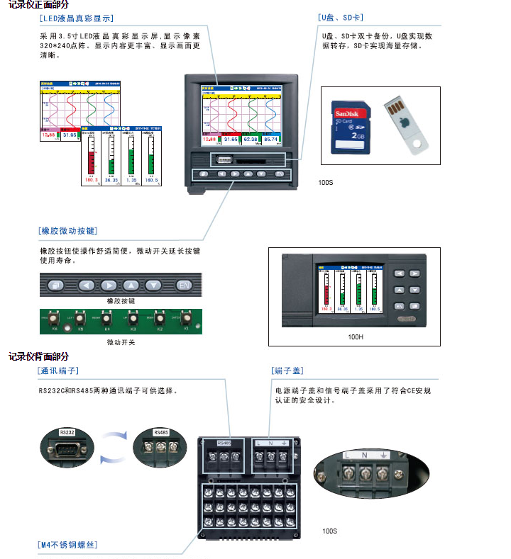 KH100系列是我公司歷經(jīng)十年開(kāi)發(fā)成功的新一代無(wú)紙記錄儀。產(chǎn)品集高可靠性、高穩定性于一身;是國內第一款具U盤(pán)、SD卡雙卡備份的無(wú)紙記錄儀,U盤(pán)實(shí)現數據轉存,SD卡實(shí)現海量存儲;中英文畫(huà)面切換;縱橫走紙自由選擇;自定義曲線(xiàn)顏色;信號萬(wàn)能輸入、高精度、抗干擾能力強。