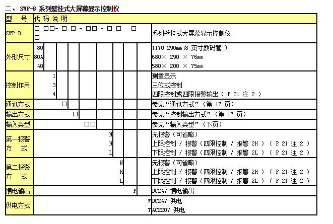 SWP-B 壁掛式大屏幕顯示控制儀,適用于大車(chē)間,遠距離觀(guān)測場(chǎng)所,可對溫度、壓力、液位、速度、頻率等測量信號進(jìn)行數字測量顯