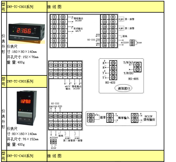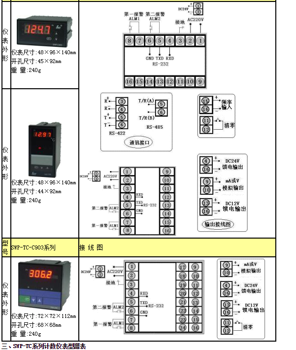 二、SWP-TC系列計數儀表接線(xiàn)圖