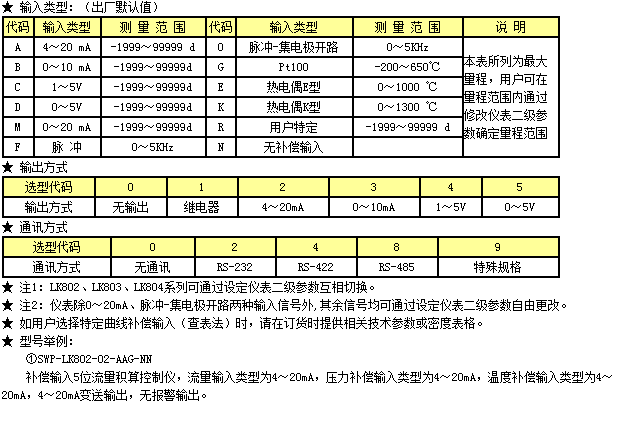 2、流量系數K的自動(dòng)演算具有多種輸入信號功能,可配接各種差壓、壓力及頻率式流量傳感器(如渦街、渦輪、孔板等),可自由選擇多種補償方式(如溫度、壓力補償等)。
