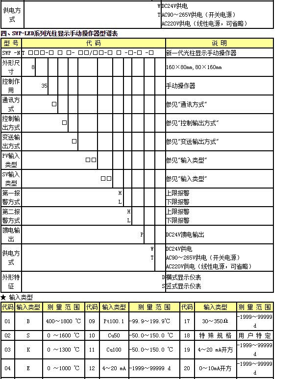 SWP-LED系列手動(dòng)操作控制器/光柱顯示手動(dòng)操作器集數字儀表與模擬儀表于一體,可對溫度、壓力、液位、速度等測量信號進(jìn)行數字量顯示控制(高亮度LED數碼顯示)及相對模擬量顯示(光柱顯示),使測量值的顯示更為清晰直觀(guān)。并可選擇雙光柱顯示。