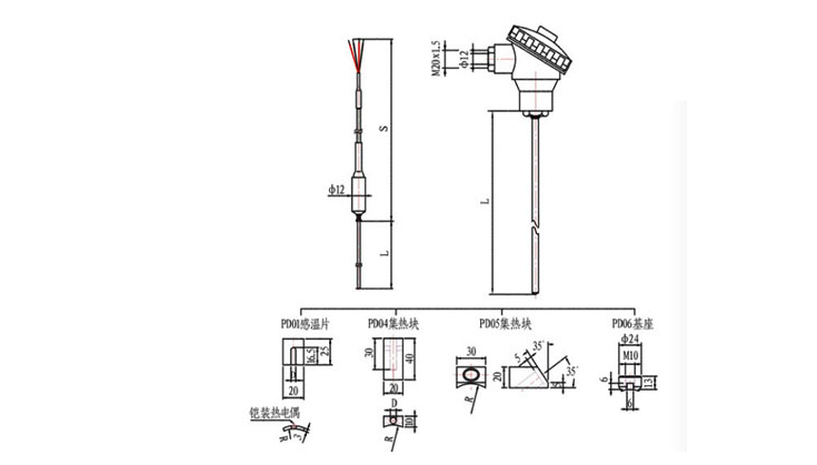 以鎧裝熱電偶配集熱塊為測溫元件用于測量屏過(guò)、高過(guò)、高再等金屬管壁溫度