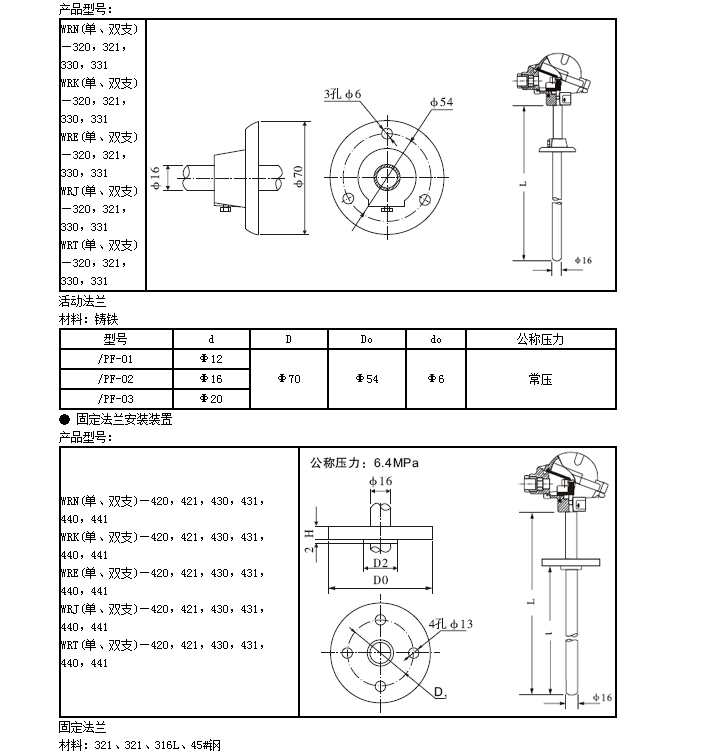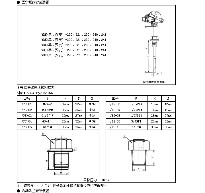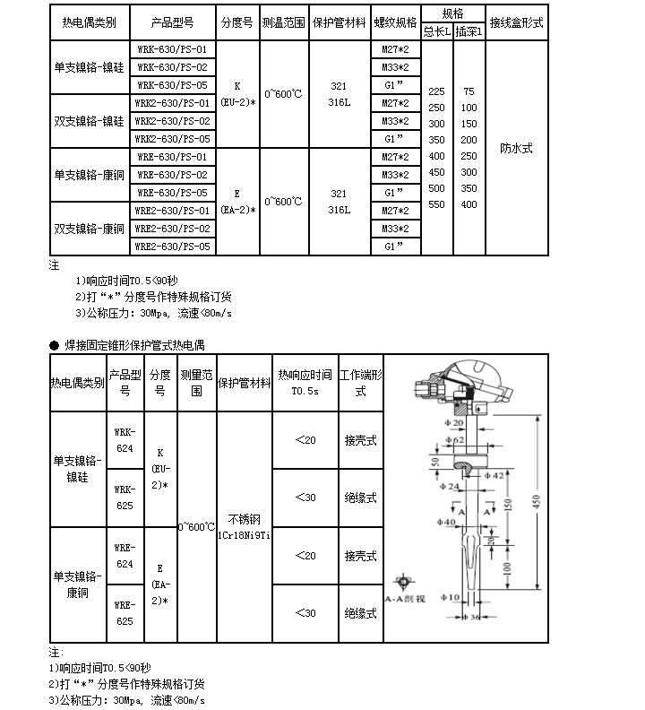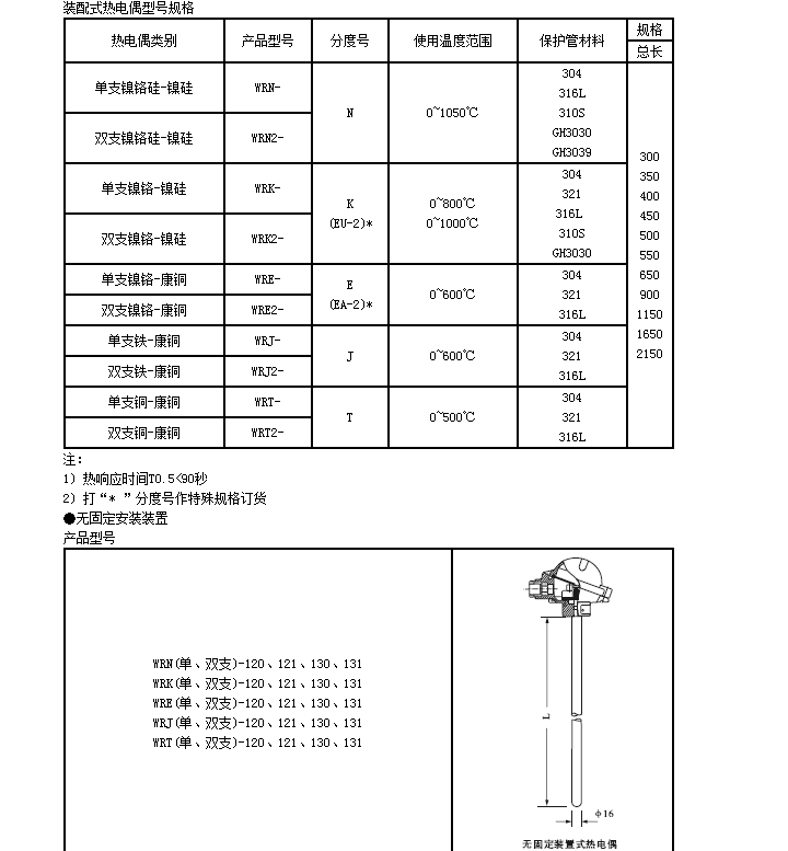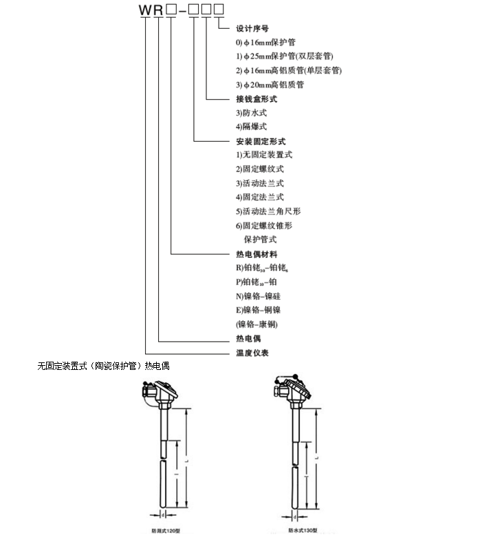 WR裝配式熱電偶基本型號