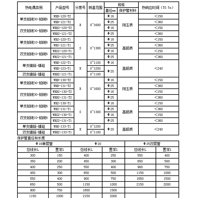 產(chǎn)品執行標準:IEC584、IEC1515、GB/T16839-1997、JB/T5582-91