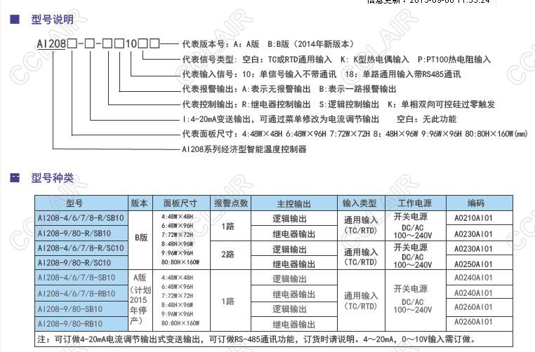 AI208-4-R10,AI208-4-SB10,AI208-6-R10,AI208-6-SB10,AI208智能溫控表(D版)