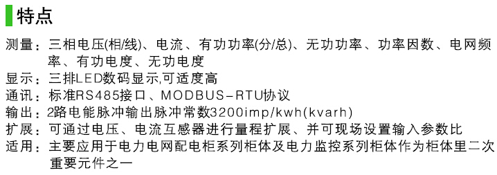 功能:三相電流 三相電壓 頻率 有功功率 無(wú)功功率 功率因數