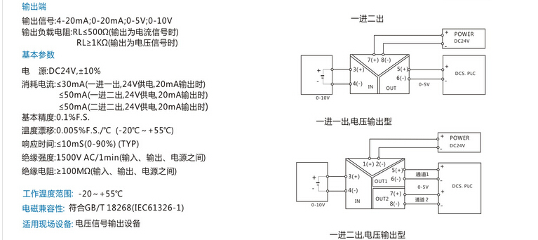 輸出范圍:4-20mA、0-10V、0-20mA、0-5V等用戶(hù)需要的標準信號