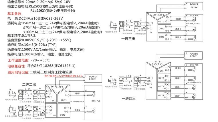 將輸入信號變換為兩路相互隔離的信號,低功耗,低熱量,低漂移,DIN T型導軌安裝