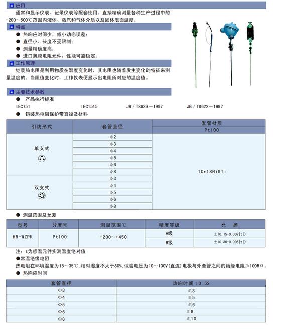 通常和顯示儀表、記錄儀表等配套使用。直接精確測量各種生產(chǎn)過(guò)程中的-200~500℃范圍內液體、蒸汽和氣體介質(zhì)以及固體表面溫度。