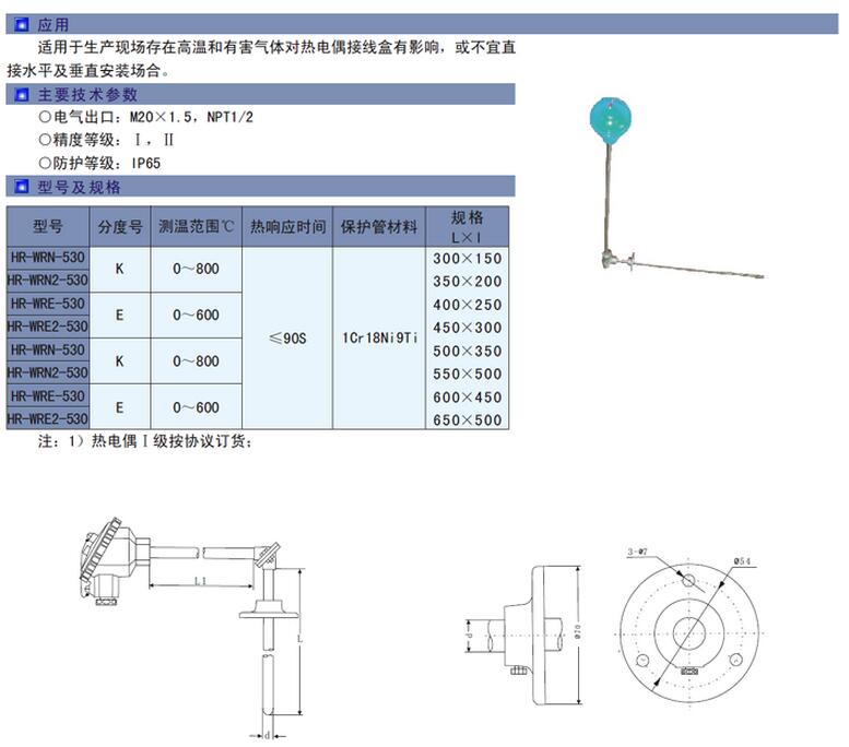 適用于生產(chǎn)現場(chǎng)存在高溫和有害氣體對熱電偶接線(xiàn)盒有影響,或不宜直接水平及垂直安裝場(chǎng)合。
