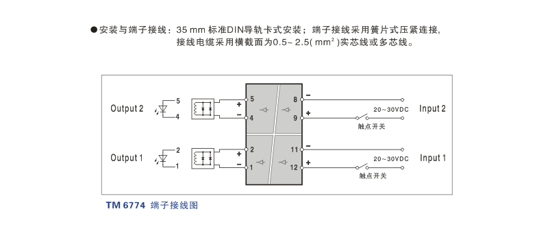 TM6000系列TM6774開(kāi)關(guān)量輸出二線(xiàn)制隔離器二入二出特性