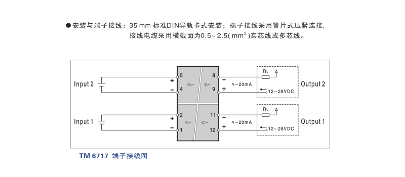 TM6000系列TM6717 直流電壓輸入二線(xiàn)制隔離器 二入二出特性