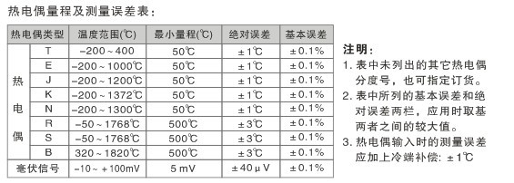 標準精度:±0.1%(參見(jiàn)熱電偶量程及測量誤差表)