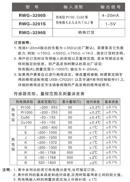 RWG-32□□S 智能溫度變送器 一入一出特性
