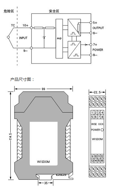 產(chǎn)品型號:WSE600熱電偶信號隔離安全柵