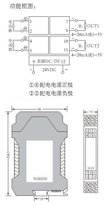 | (雙通道)WS21525 二線(xiàn)制隔離配電器 雙路隔離配電器;為每個(gè)變送器配獨立的隔離電源;DIN TS32,TS35型導軌方式。 |