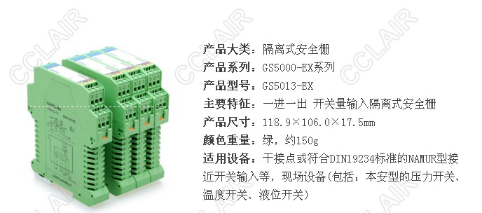 開(kāi)關(guān)量輸入隔離式安全柵,接收來(lái)自危險區的干接點(diǎn)或符合DIN19234標準的NAMUR型接近開(kāi)關(guān)輸入, 通過(guò)安全柵隔離傳輸到安全區晶體管輸出,它具有輸入斷線(xiàn)檢測報警指示及輸入輸出反相設置功能。該產(chǎn)品需要獨立供電,電源、輸入和輸出三隔離。