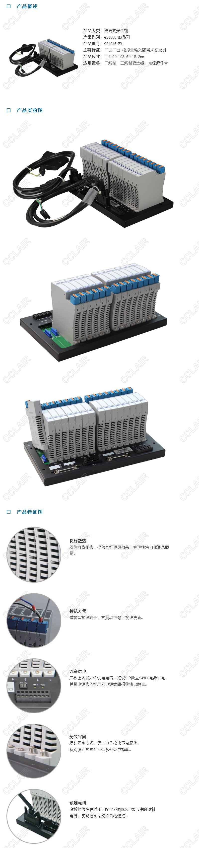 GS4046-EX為檢測端隔離柵,給危險區的變送器提供隔離電源,變送器產(chǎn)生的0/4~20mA信號(也可以是電流源信號),從危險側隔離傳輸到安全側,同時(shí)支持HART數字信號雙向傳輸。該產(chǎn)品需要獨立供電,電源、輸入和輸出三隔離。