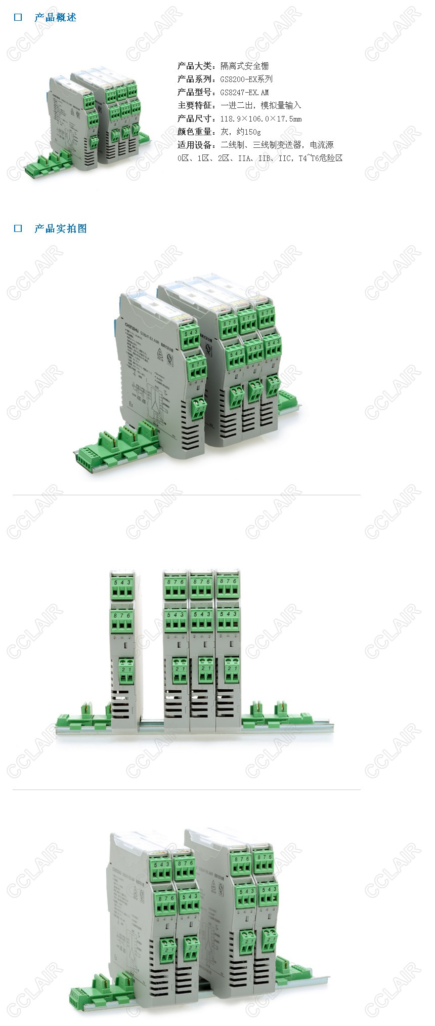 模擬量輸入,4~20mA、RS485輸出隔離柵。給危險區的變送器提供隔離電源,并將變送器或電流源產(chǎn)生的4~20mA電流信號從危險側隔離傳輸到安全側。具有RS485通訊功能,可以通過(guò)MODBUS-RTU協(xié)議組成網(wǎng)絡(luò )。通訊和電源可選擇導軌或端子連接方式。