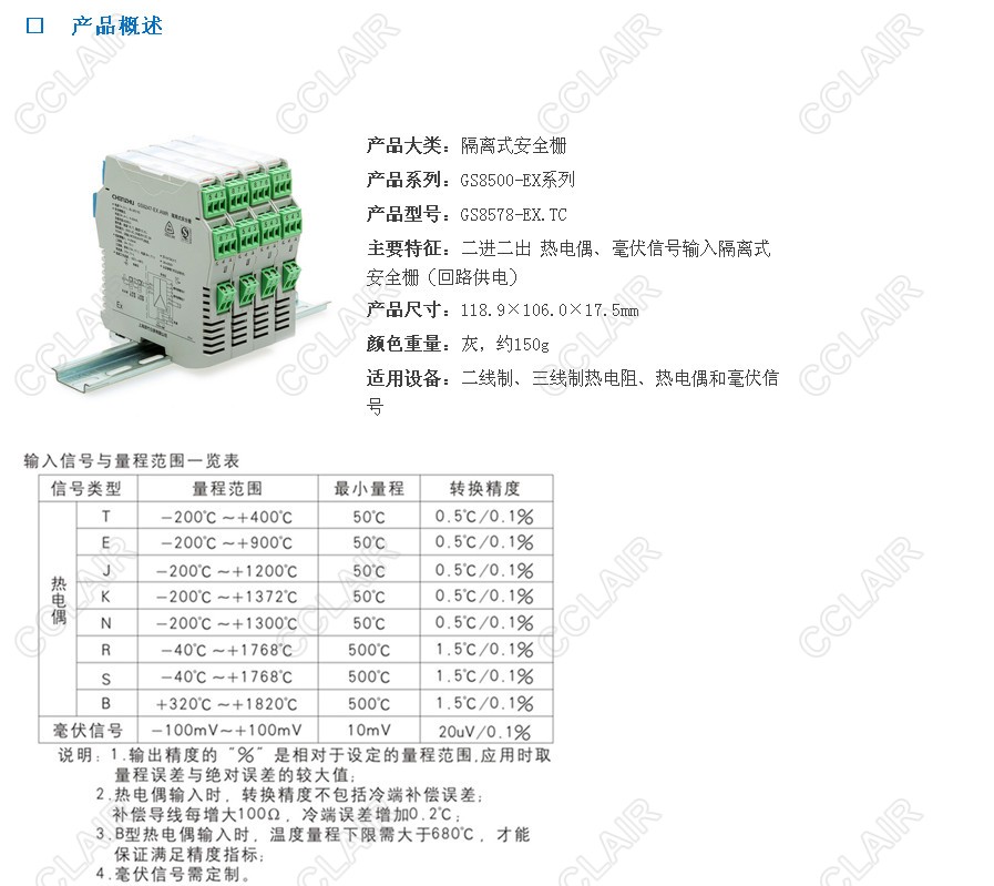 回路供電型隔離式安全柵,將現場(chǎng)的熱電阻、熱電偶、毫伏信號、電位器信號轉換成0/4~20mA的電流信號或0~5V電壓信號,從危險區隔離傳送到安全區。它具有冷端補償功能,是智能型的,可通過(guò)計算機對熱電阻、熱電偶、電位器的分度號、量程范圍等進(jìn)行組態(tài)。