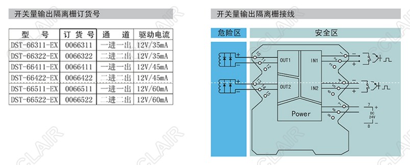 本產(chǎn)品將安全區的電源通過(guò)開(kāi)關(guān)控制,驅動(dòng)危險區的電磁閥、聲光報警器等本安設備。
