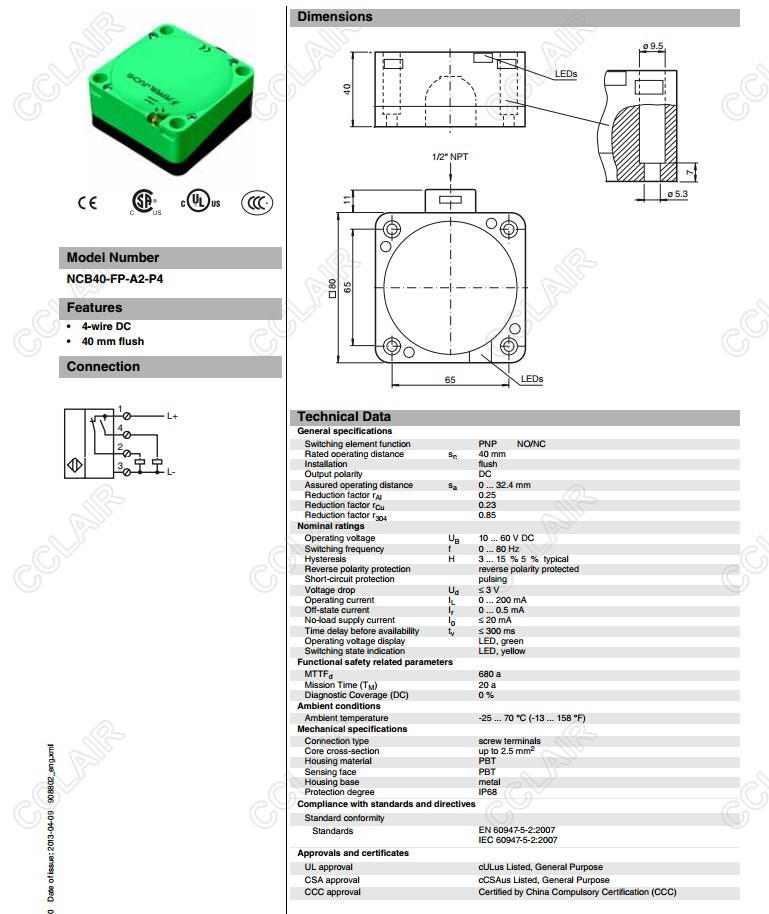 NCB40-FP-A2-P2,NCB40-FP-A2-P4,電感式接近開(kāi)關(guān)