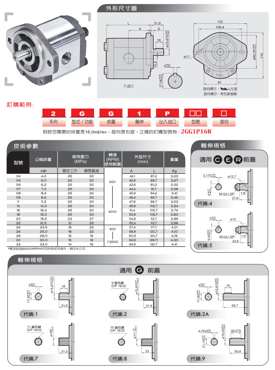 2GG1P09L,2GG1P11L,2GG1P14L,2GG1P16L,2GG1P18L,HONOR齒輪泵