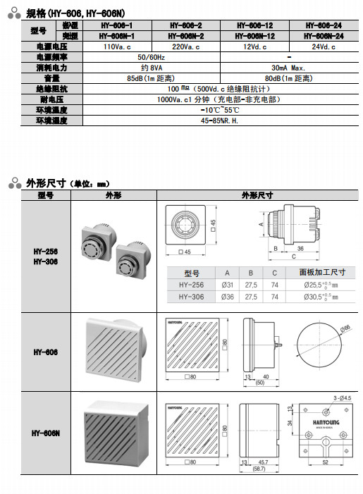 HY-606N-1,HY-606N-2,HY-606N-12,HY-606N-24,強力蜂鳴器