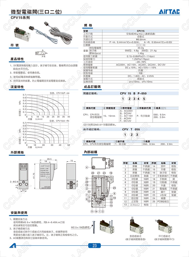 CPV15AP-050,CPV15AP-200,CPV15BP-050,CPV15BP-200,CPV15CP-050,CPV15CP-200,AIRTAC微型電磁閥