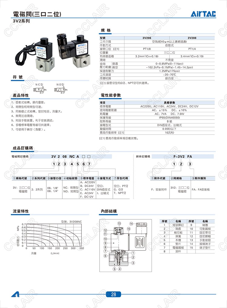 3V206NC,3V206NO,3V208NC,3V208NO,AIRTAC電磁閥
