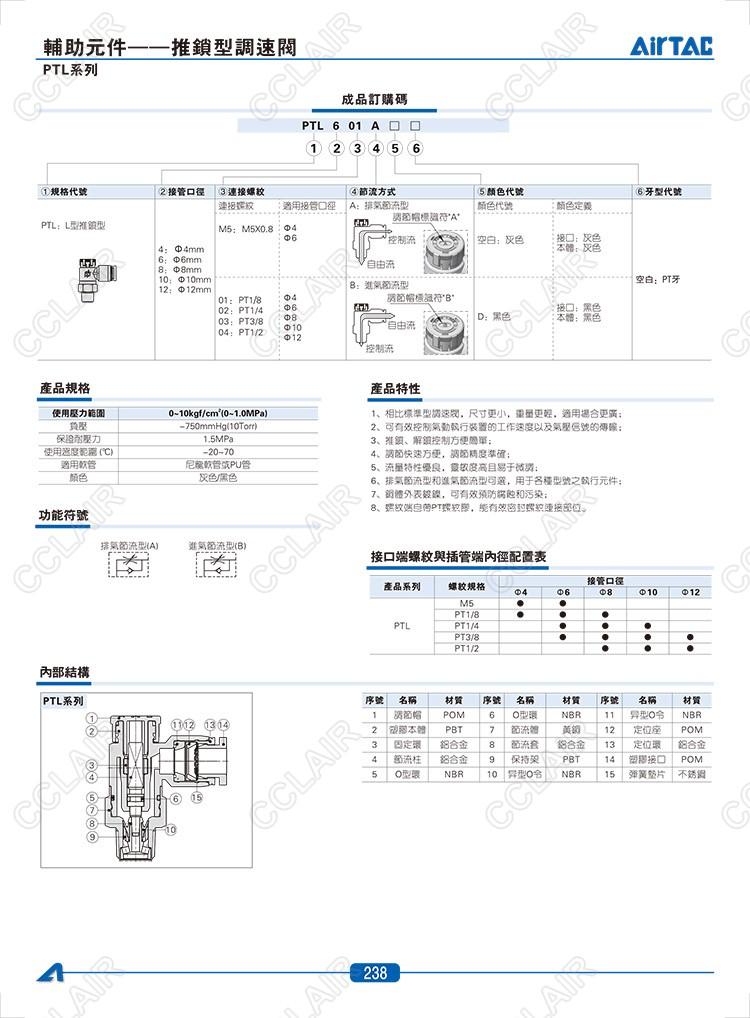 PTL4M5A,PTL4M5B,PTL401A,PTL401B,PTL6M5A,PTL6M5B,AIRTAC調速閥