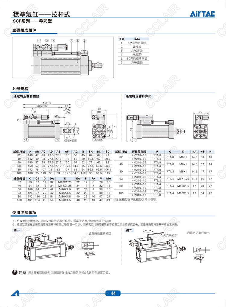 SCF32*25,SCF32*25-S,SCF32*50,SCF32*50-S,SCF32*75,SCF32*75-S,AIRTAC亞德客標準氣缸-拉桿式