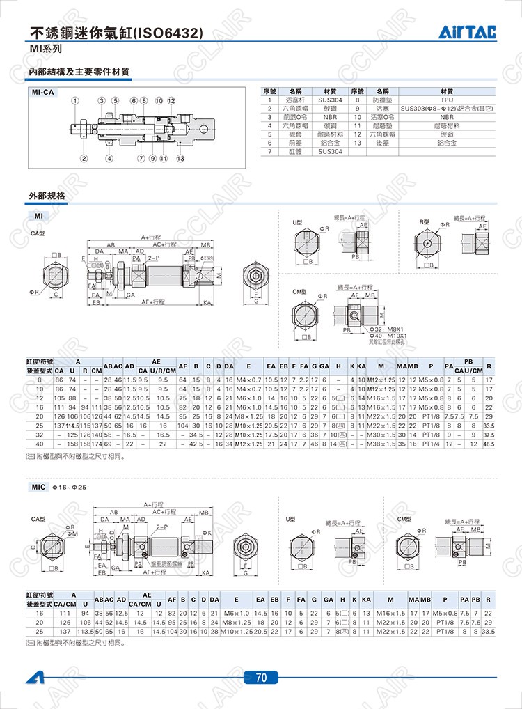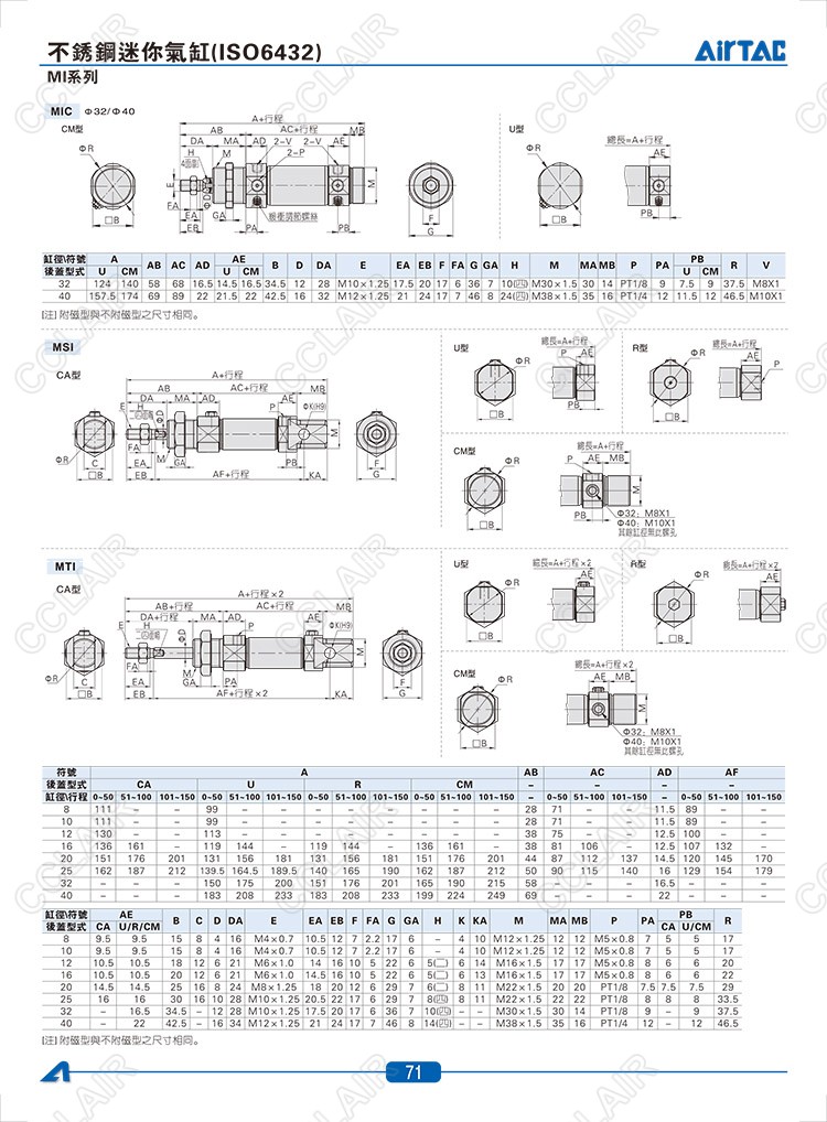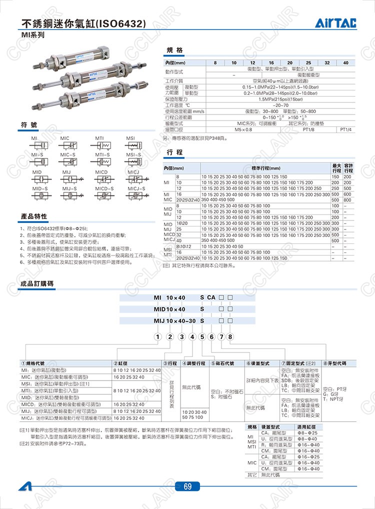 MI8*10CA,MIC16*10CA,MSI8*10CA,MTI10*10CA,MID8*10,MIJ8*10,MICD16*10,AIRTAC臺灣不銹鋼迷你氣缸