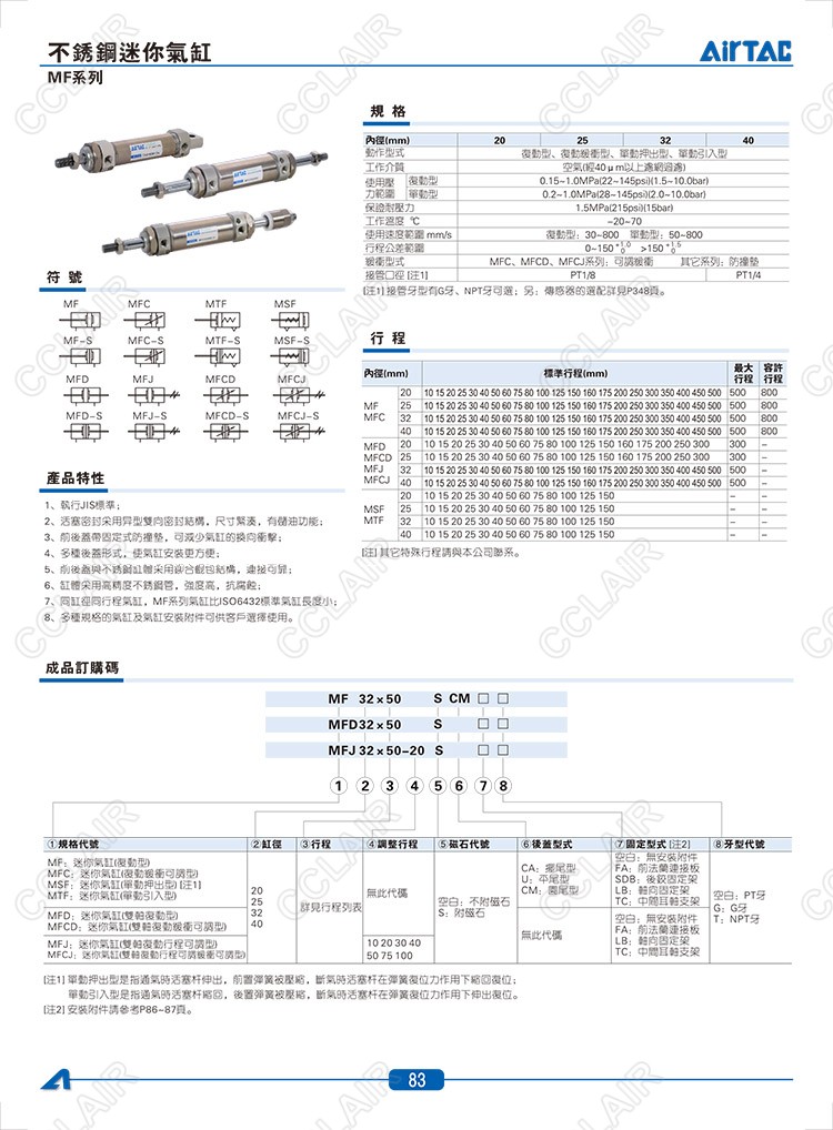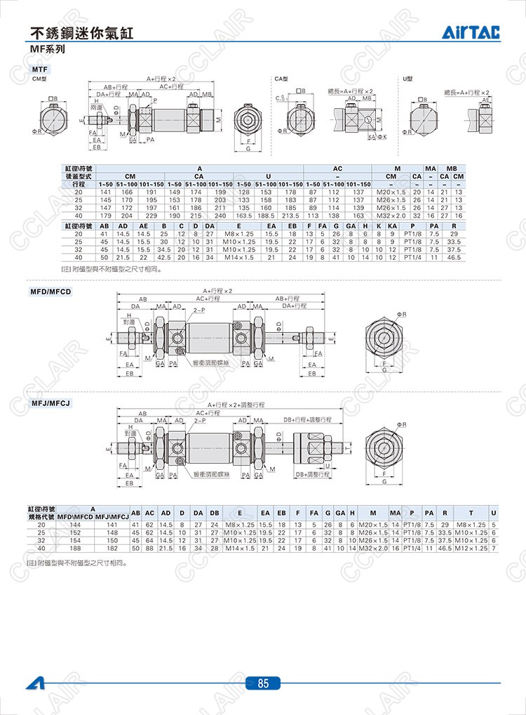MF20*10-CA,MFC20*10-U,MFD20*10,MFJ20*10,MFCD20*10,MFCJ20*10,MSF20*10-CM,MTF20*10-U,AIRTAC亞德客迷你氣缸