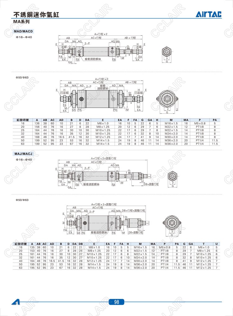 MA16*10-CA,MAC20*10-CM,MAR20*10,MAJ16*10,MACD20*10,MACJ20*10,MSA16*10-U,MTA16*10-U,AIRTAC亞德客迷你氣缸