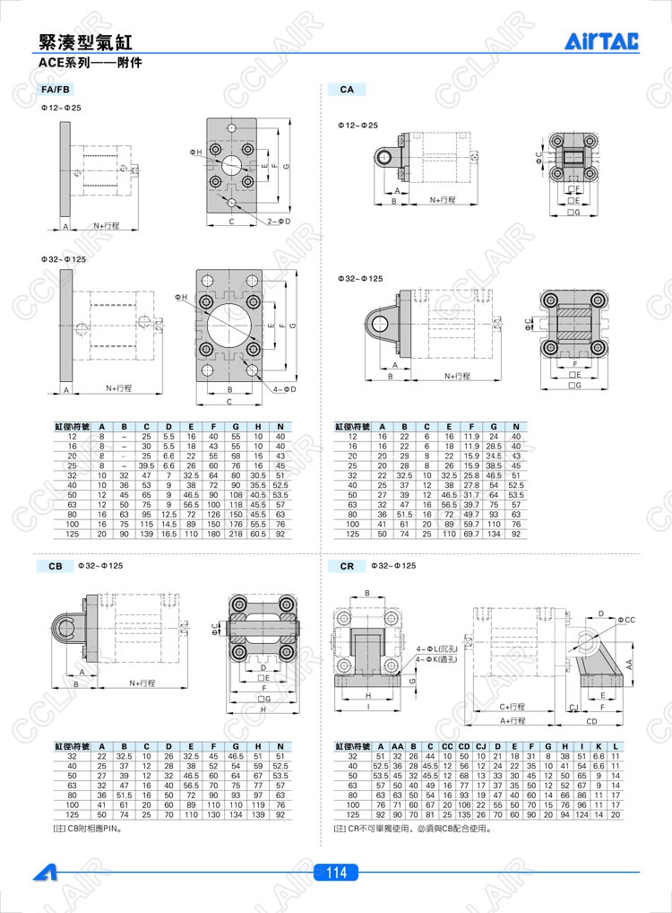 LB12,FA/FB12,CA12,CB32,CR32,SDB12,FTC32,TCM232,F-ACQ12I,F-ACQ12Y,AIRTAC亞德客緊湊型氣缸附件