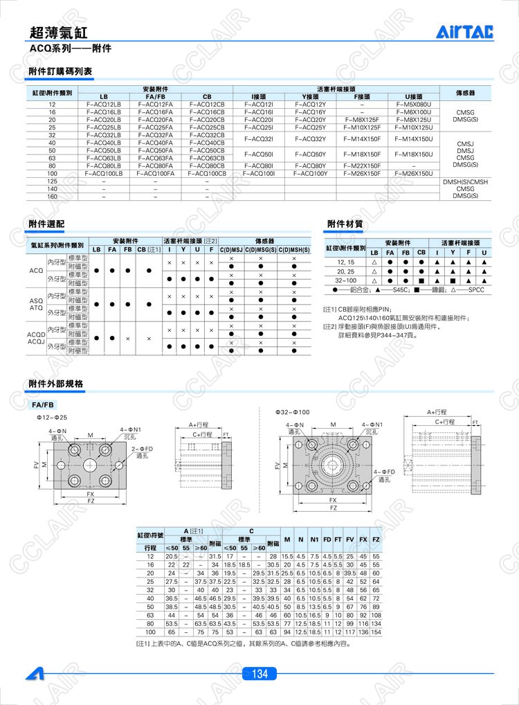 LB12,LB16,CB12,CB16,F-ACQ12Y,F-ACQ16Y,F-ACQ12I,F-ACQ16I,AIRTAC亞德客超薄氣缸附件