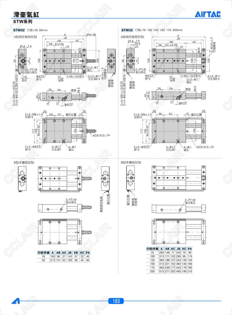 STW10*25-S,STW10*50-S,STW10*75-S,STW10*100-S,STW16*25-S,AIRTAC亞德客滑臺氣缸